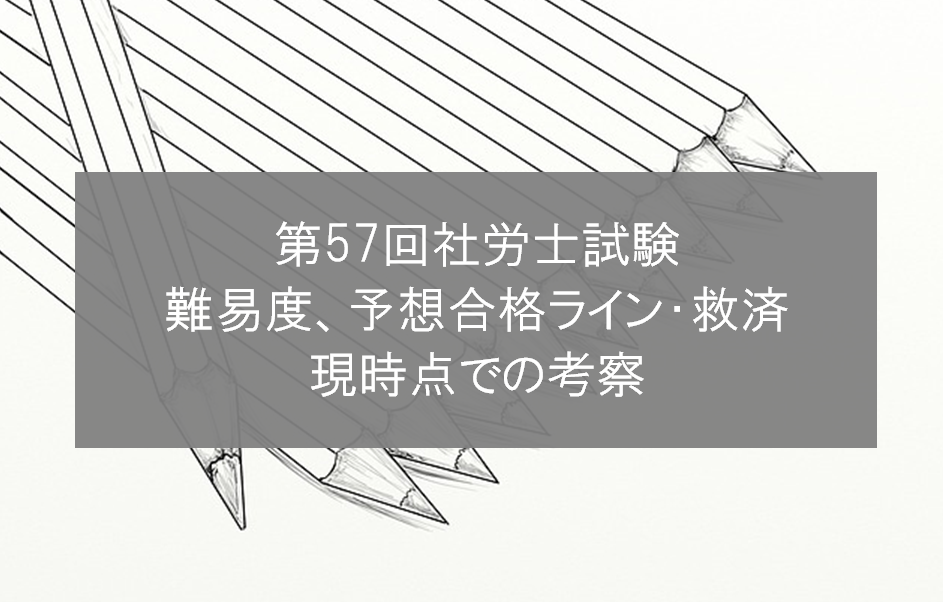 第57回社労士試験が終わってまだ間もないですが、現時点での考察されている難易度や予想合格ライン、救済(補正)についてまとめてみました。