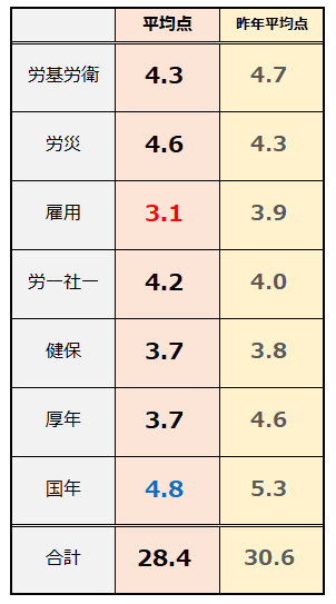 労基衛:昨年4.7点⇒今年4.3点 難易度上がった
