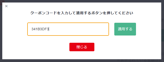 クーポンコードを張り付け、「適用する」をクリックします。