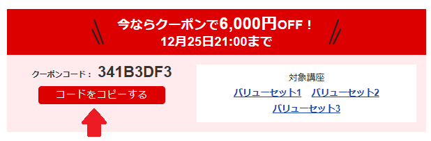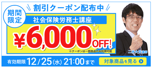 社労士講座フォーサイトでは、12月25日(水)までの期間、各バリューセットが6,000円割引になるクーポンを配布しています。