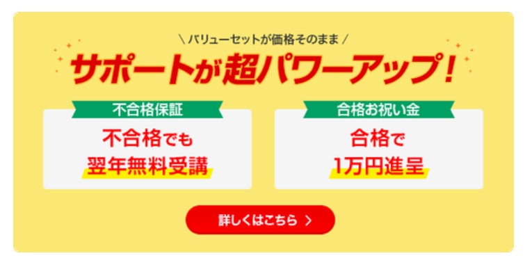※バリューセット3の不合格保証は全額返金保証制度のみ