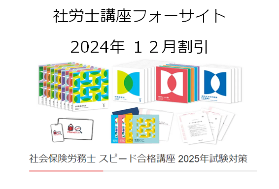 当サイトで私の受験経験から推奨している社労士講座フォーサイトでは、2024年12月もお得なセット割引を実施中です。