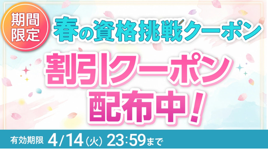 現在新生活応援として、「春の資格挑戦クーポン」を配布しています。