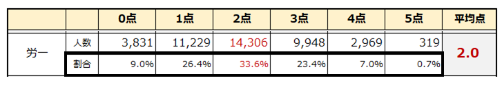 1点以下が39.3%となり、”1点以下が30%以上”を満たしているため、2点救済になりました。