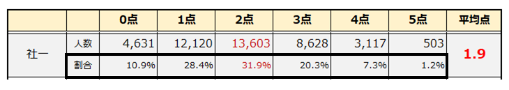 社会一般を見てみると、3点以上取れた方は3割以下しかいません( ゚Д゚)!更に珍しく0点が1割以上、2点以下割合が7割超えという、なかなかの低さでした。