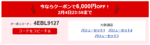 割引クーポンを適用するには、必ず「クーポンコードをコピー」してから受講手続き画面にいきましょう。